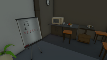 I really liked the concept of going to and exploring different locations that each have their own flavor of spookiness. Very impressive level design work, my favorite spooky location was the camp in the woods, where you have to get the key from an open metal cage -- that was a good environmental storytelling! Although it felt to me like there was a bit of quantity over quality effect. The game would have benefited, in my opinion, from having fewer locations, but instead having these locations more polished and maybe a little bit more going on in them. This is especially evident with the Halloween location, which has a ton of empty space (although you can argue that being able to peep behind the level geometry and into the black, empty void is its own kind of horror).